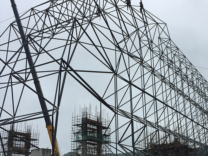 4.满堂脚手架是最有利的 螺栓球网架合作施工平台,它在确保合作施工安全的同时,又能承当部分网架重量,有效防止网格下沉变形,以及调整网架安装过程中的误差积累和支座与预埋件之间的偏离。